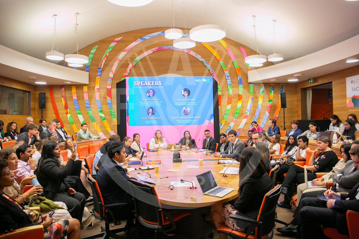 16 October 2024. Ethiopia Room, FAO Headquarters, Rome, Italy. View of the speakers and participants of the North America Regional Youth Assembly Workshop.