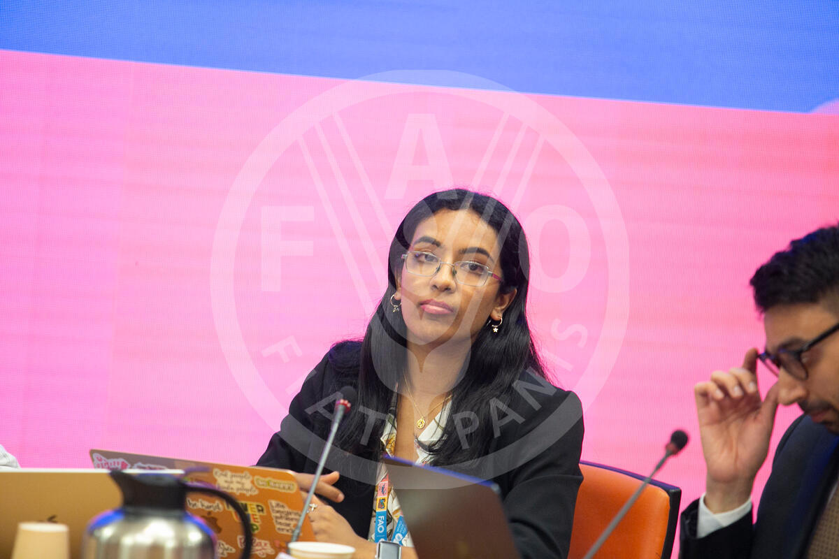 16 October 2024. Ethiopia Room, FAO Headquarters, Rome, Italy. View of the speakers and participants of the North America Regional Youth Assembly Workshop.