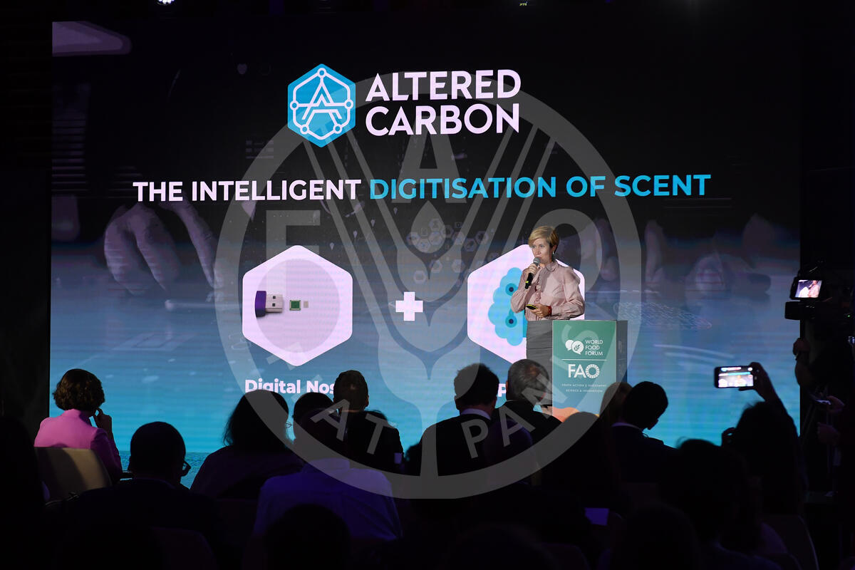 16 October 2024. Sheikh Zayed Centre, FAO Headquarters, Rome, Italy. Dateline Vassileva OCC, Winner of the “Food Loss” Category speaks at the Startup Innovation Awards