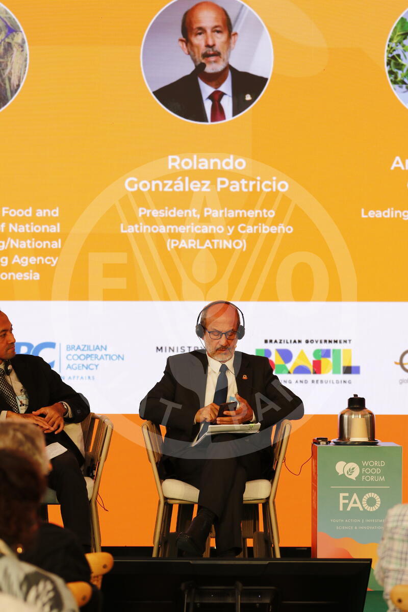 16 October 2024. Farm Venue, FAO Headquarters, Rome, Italy. Rolando Gonzà lez Patricio, President Parlamento Latinoamericano y Caribeño, at the Global Family Farming Forum event: Sowing rights: uptake of global policy instrument.