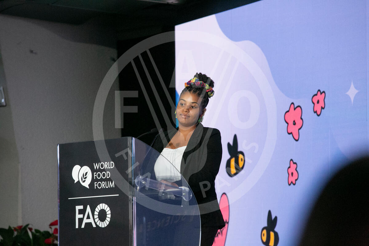 15 October 2024. Plenary, FAO Headquarters, Rome, Italy. Tiffany Marcelle (Agriculture Alliance of the Caribbean - AACARI and WRF Family Farming Youth Core Group), speaks at the Opening Ceremony of the Global Family Farming Forum.