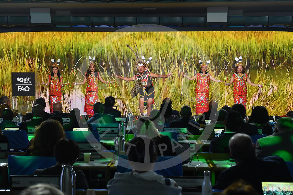 14 October 2024. Plenary Hall, FAO Headquarters, Rome, Italy. Indonesian Cultural Dance group performs at the World Food Forum Grand Opening.