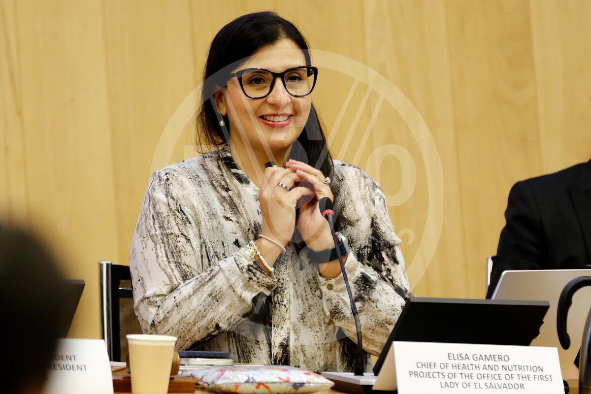 15 October 2024. German Room, FAO Headquarters, Rome, Italy. Elisa Gamero, Chief of Health and Nutrition Projects, Office of the First Lady, speaks at the Agri-Innovation Action: Impacts of Sustainable Nutrition on Young People event.