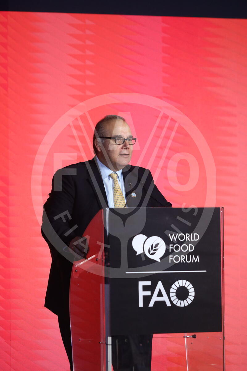 15 October 2024. Plenary, FAO Headquarters, Rome, Italy. Maximo Torero Cullen, FAO Chief Economist speaks at the event, part of the 2024 World Food Forum.
