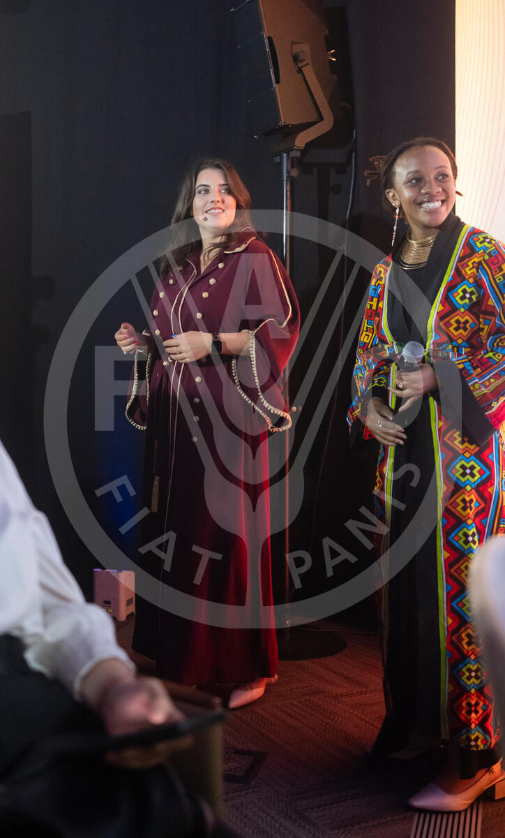 14 October 2024. Sheikh Zayed Centre, FAO Headquarters, Rome, Italy. Moderator Lindsey Hook speaks during WFF Youth Concert.