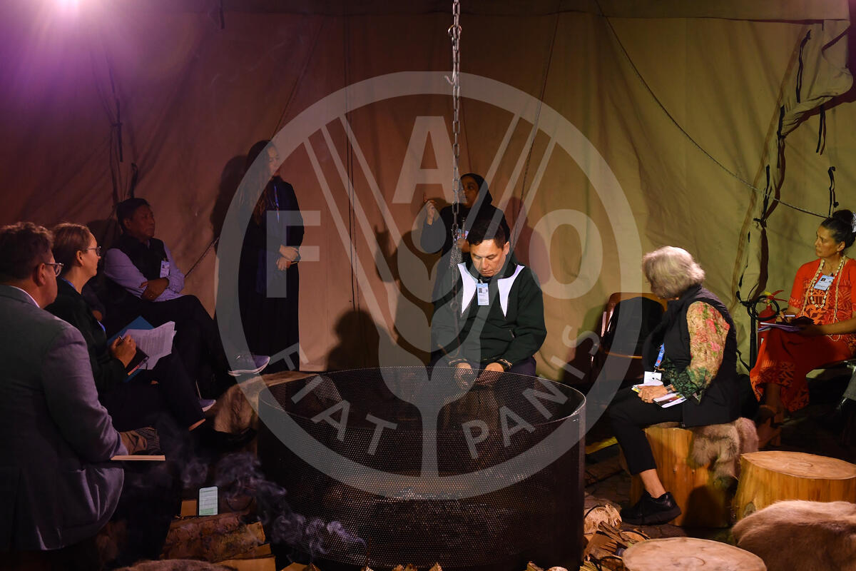 14 October 2024. Indigenous Youth Territory, FAO Headquarters, Rome, Italy. FIREtalk inside the Indigenous tent.