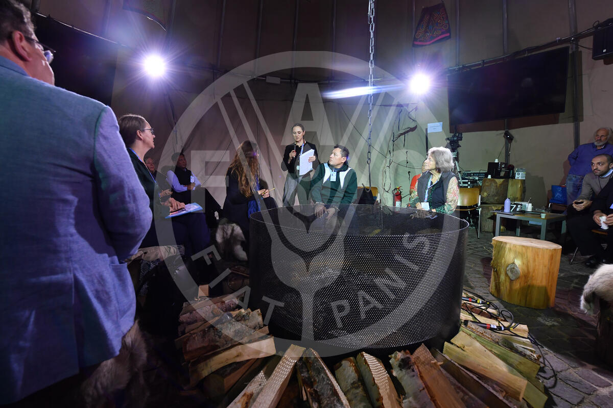 14 October 2024. Indigenous Youth Territory, FAO Headquarters, Rome, Italy. Inside the Indigenous tent where Saami chefs from the Association of World Reindeer Herders are cooking a reindeer-based meal.