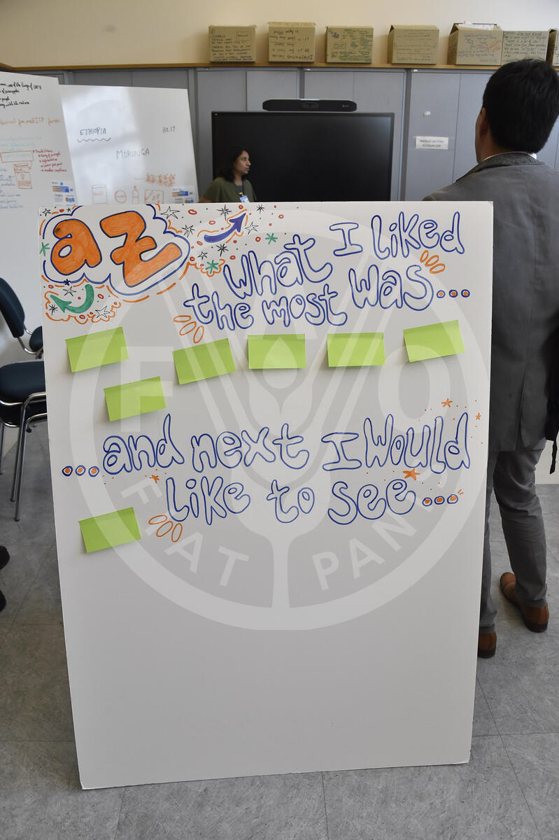16 October 2024. Acceleration Zone, FAO Headquarters, Rome Italy. View of the board of ideas and opinions shared at the Innovation Show and Share Time at the Science and Innovation Lab.