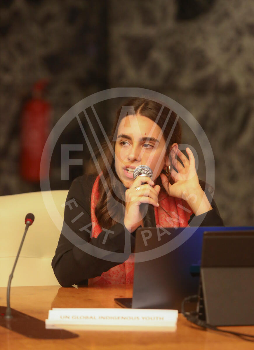 16 October 2024. King Faisal, FAO Headquarters, Rome, Italy. Nicole Cecchinato gives her speech at The role of Youth in Agroecological Transformation: Insights from Youth Networks worldwide.