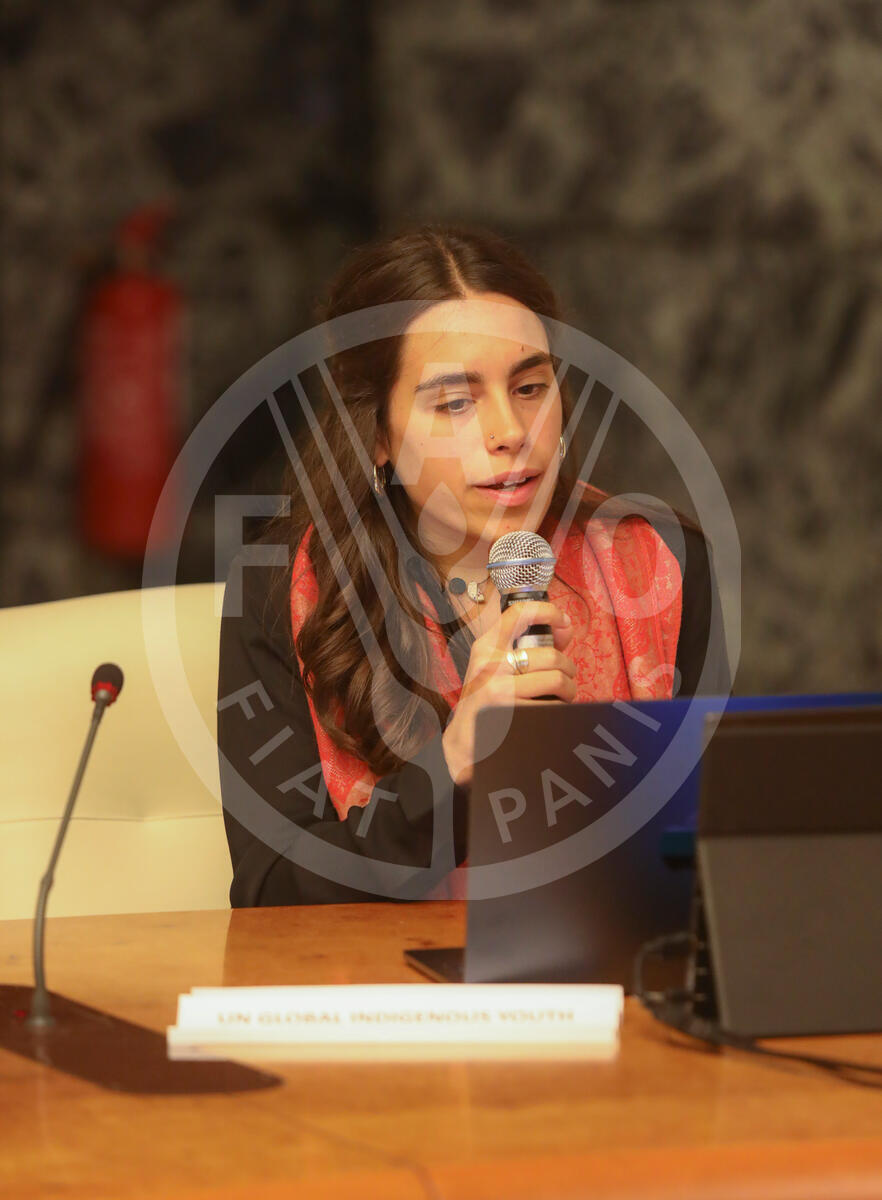 16 October 2024. King Faisal, FAO Headquarters, Rome, Italy. Nicole Cecchinato gives her speech at The role of Youth in Agroecological Transformation: Insights from Youth Networks worldwide.