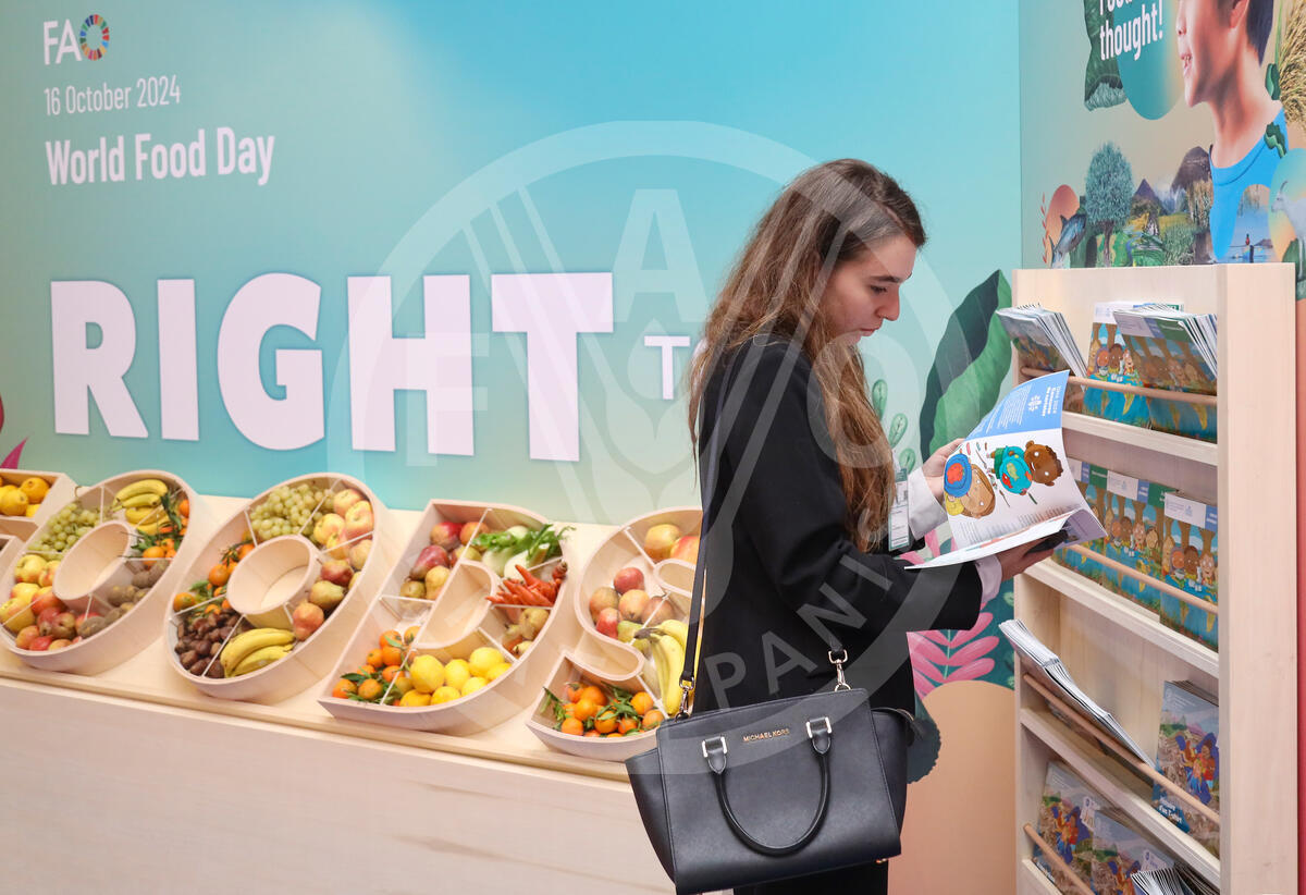 16 October 2024. Junior World Food Day Corner, Atrium, FAO Headquarters, Rome, Italy. World Food Day 'Right to Foods'.