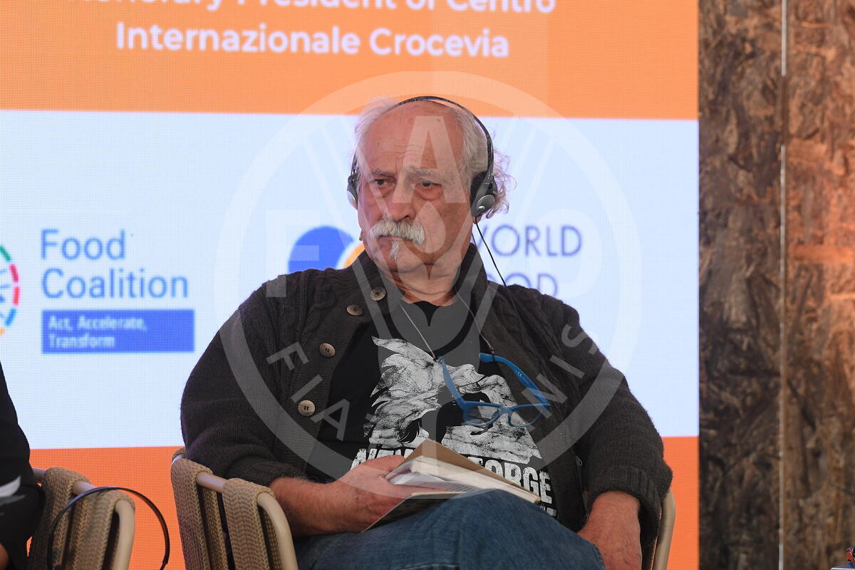 16 October 2024. FAO Headquarters, Farm Venue, Rome, Italy. Antonio Onorati, Member of Associazione Rurale Italiana, Member of European Coordination Via Campesina and Honorary President of Centro Internazionale Crocevia, at Session 4: Trends affecting the future of small-scale family farming, rural employment and rural transformation.