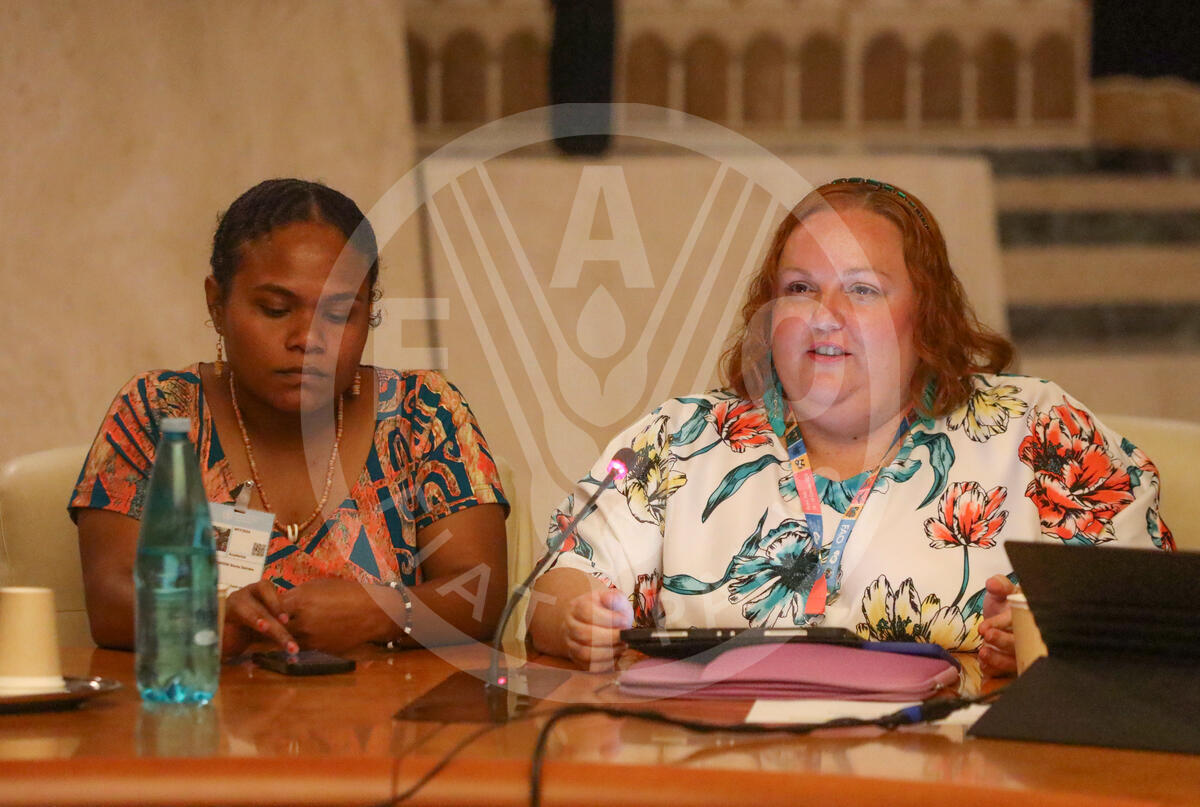 16 October 2024. King Faisal, FAO Headquarters, Rome, Italy. Belinda Christensen gives her speech at Voices from the Pacific: A talanoa dialogue