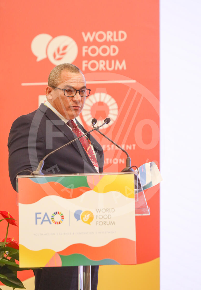 16 October 2024. Red Room, FAO Headquarters, Rome, Italy. Maury Hechavarria Bermùdez, Vice Minister for Agriculture of Cuba, gives his speech at the Hand-in-Hand Country Investment Plans