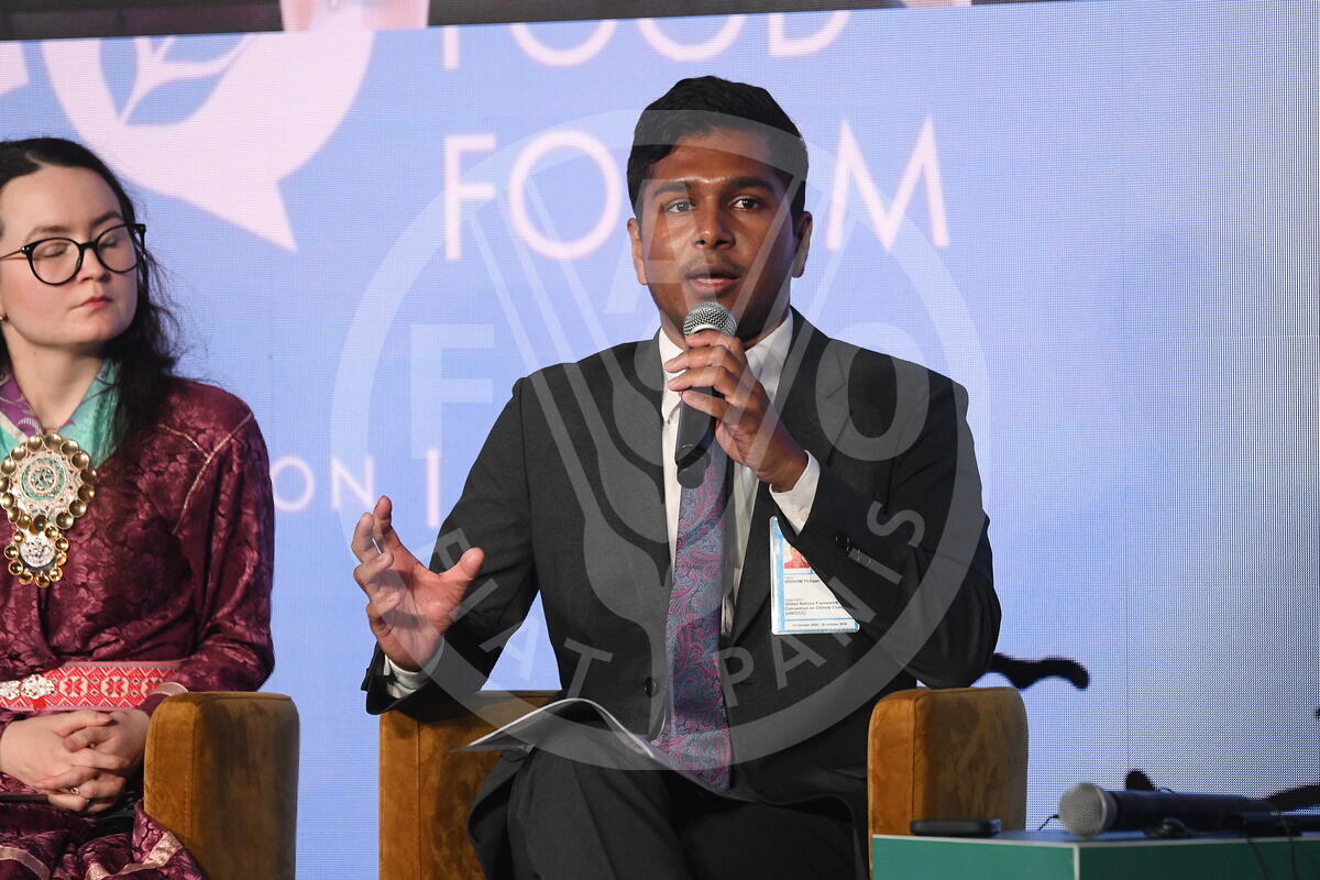 16 October 2024. Plenary Hall, FAO Headquarters, Rome, Italy. Thibyan Ibrahim, Chair of the Technology Executive Committee (TEC) under the UNFCCC, gives his speech at the session "Closing the Science, Technology, and Innovation Gap."