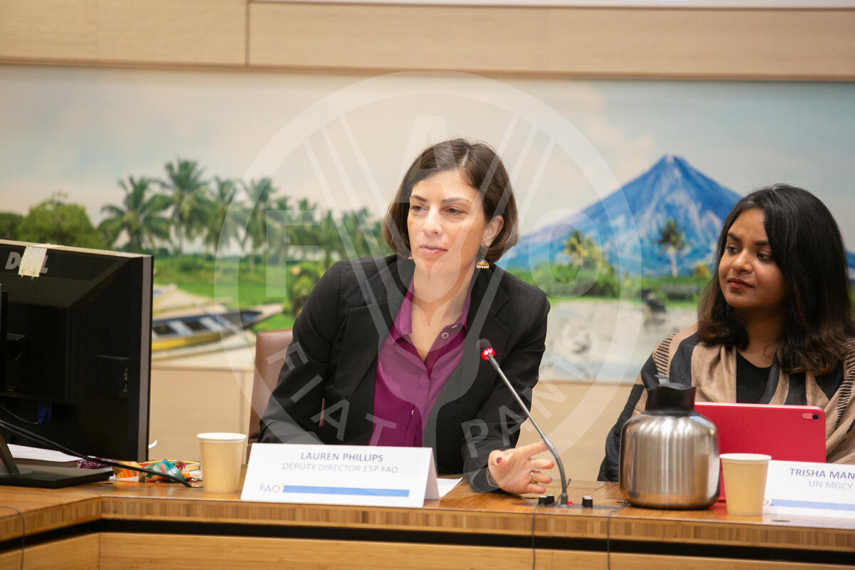 16 October 2024. Philippine Room, FAO Headquarters, Rome, Italy. Lauren Phillips, Deputy Director ESP, FAO, speaks at the side event “Empowering Youth to End Child Labour in Agriculture”