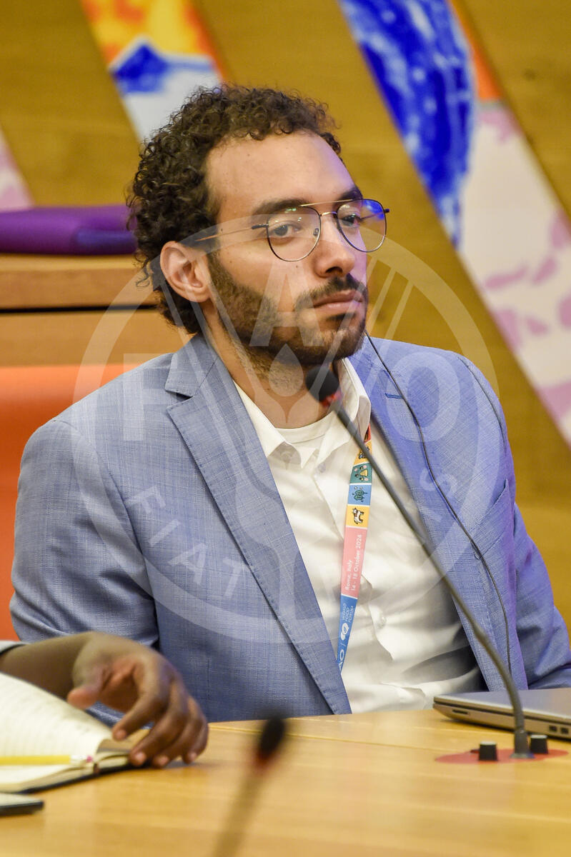 16 October 2024. Ethiopia Room, FAO headquarters, Rome, Italy. Jeyid Yacoub Daye (Chargè de programme Centre d’innovation agricole), at the Near East and North Africa Regional Youth Assembly Workshop.