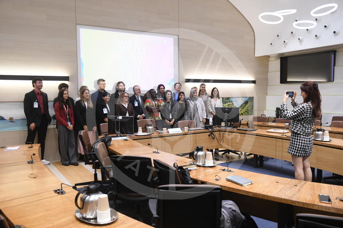 18 October 2024. Philippines Room, World Food Forum, FAO Headquarters, Rome, Italy. The road to Agrifood System Change: Just transition and biotech in action. Group photo.