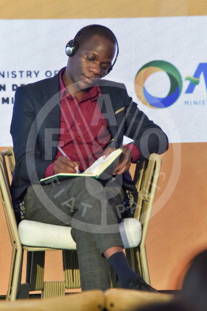 18 October 2024. Farm Venue, FAO Headquarters, Rome, Italy. Harbert Mawejje, World Farmers’ Organization, at the United Nations Decade of Family Farming Young Farmers' Roundtable.
