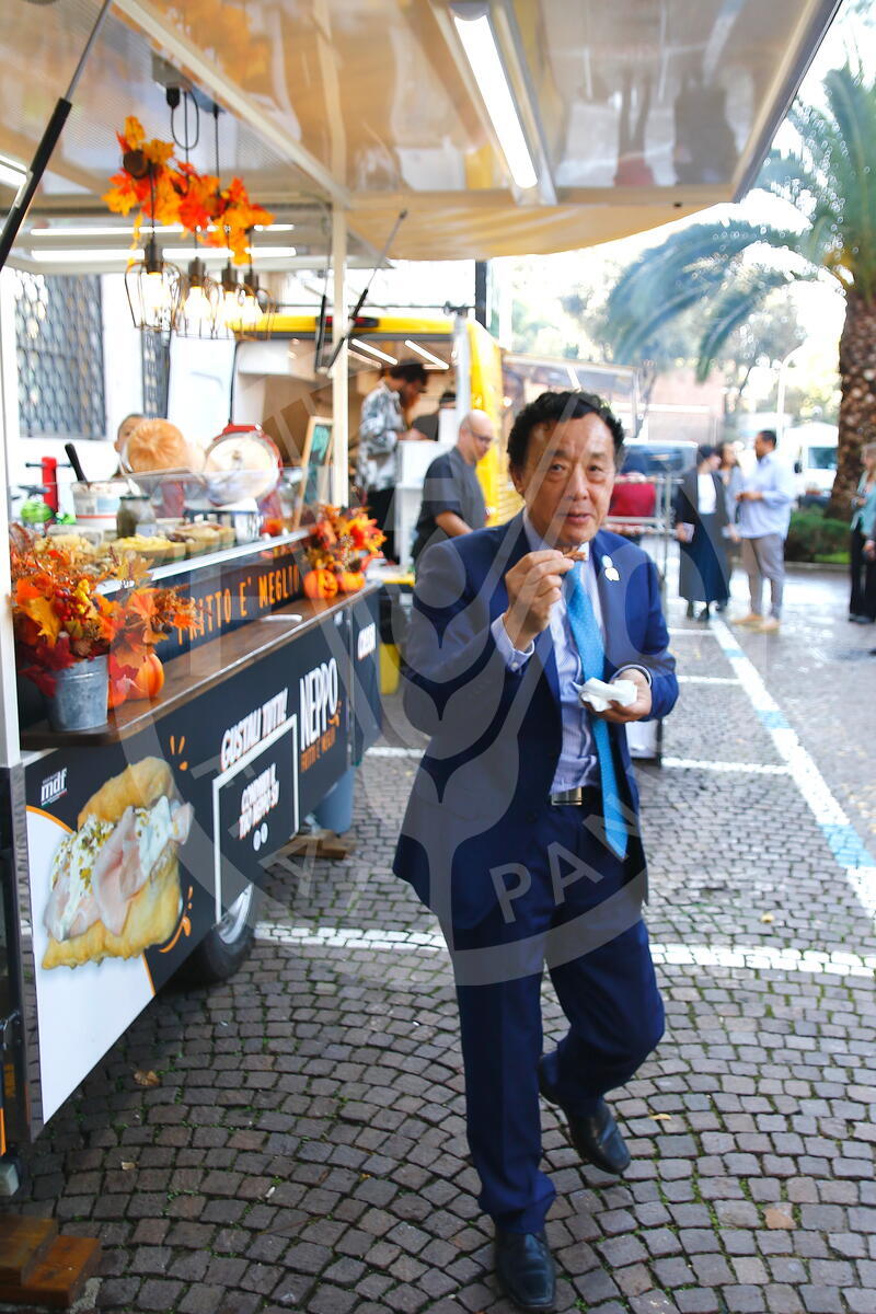 18 October 2024. Culture Exhibition, FAO Headquarters, Rome, Italy. FAO Director-General QU Dongyu at food trucks.