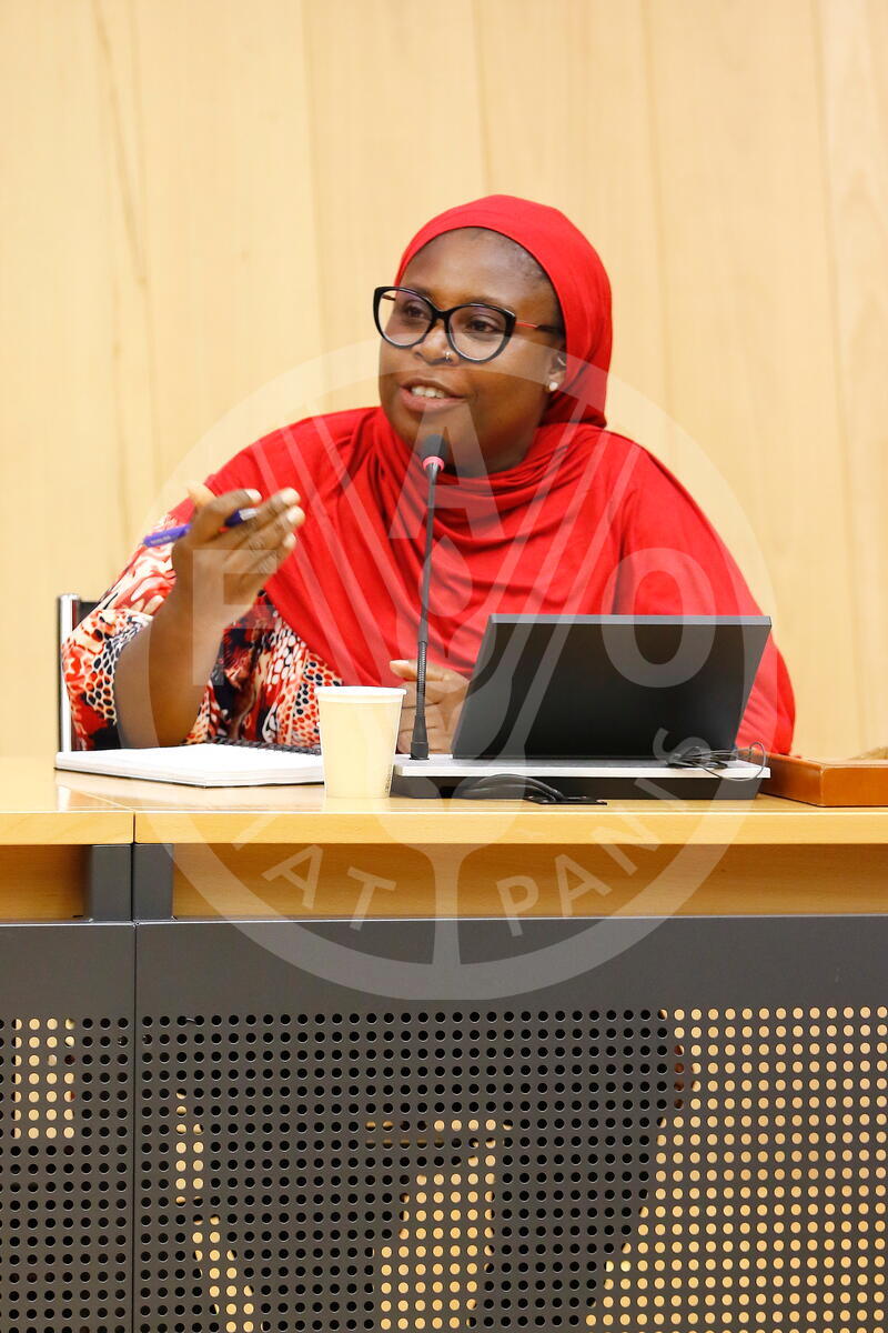 18 October 2024. German Room, FAO headquarters, Rome, Italy. A panelist giving her speech at the World Food Forum National Chapters and Youth Organizations: Intercontinental youth dialogues on food security.