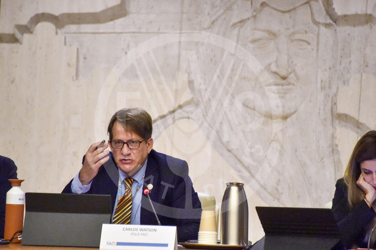 18 October 2024. King Faisal, FAO headquarters, Rome, Italy. Carlos Watson, Representative to the People's Republic of China, Head of FAO's Private Sector Partnerships Unit, gives his speech at Empowering the Future: Private sector partnerships for youth advancement.