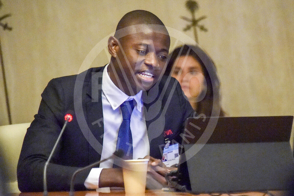 18 October 2024. King Faisal, FAO Headquarters, Rome, Italy. Mohamed Samu, CEO and Principal Investigator of EntoTech Innovations, Co-Founder of Eco Agribusiness LTD, gives his speech at Empowering the Future: Private sector partnerships for youth advancement.